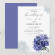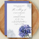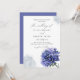 O delicado design de aquarela de flores azuis em fundo branco pristino. Este convite meticulosamente trabalhado dá o tom perfeito para o seu dia especial, misturando design refinado com um toque de romance. Convide seus convidados a compartilhar a celebração do seu amor com este maravilhoso e único convite para o casamento.