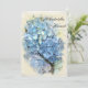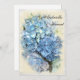 Convide convidados para os vossos núpcias com o bonito Convite para Casamento de Flores de Hydrangea Azul. Este elegante convite de casamento botânico personalizado apresenta uma fotografia floral pintada digitalmente de um florescimento azul de flor de hydrangea com um fundo creme / branco esbranquiçado.