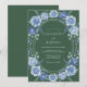 Este design apresenta uma disposição circular de flores azul-ardósia e folhagens delicadas, evocando um charme botânico vintage. O estilo pictórico adiciona um toque artístico, criando uma atmosfera sofisticada e romântica.