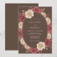 Uma rica tapeçaria de flores profundas de carmesim e marfim cremoso envolve um oval elegante. Este design evoca um sentido de romance vintage e beleza refinada.