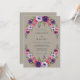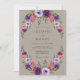 Uma encantadora coroa de flores vibrantes roxas e rosadas envolve este design. Flores delicadas e pequenos cachos de frutas criam uma atmosfera romântica e graciosa, perfeita para uma celebração de primavera ou verão.