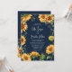 Convite para o casamento de girassol no outono elegante. Design apresenta um fundo azul-marinho de tendência com flores de girassol amarelo no outono e verde armando um modelo de casamento moderno que foi desenhado usando um roteiro de caligrafia branca e fontes serif. Simplesmente personalize com seus próprios detalhes.