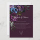 A Design apresenta anêmonas roxas escuras, azul escuro e ranúculo roxo claro num fundo roxo muito escuro. A fonte está em uma delicada e quase branca sombra de cinzas que contrasta com o fundo escuro. O cartão é especificamente para a área em Gótica, que significa elegância e extravagância. É perfeito para casais que procuram um convite de casamento não convencional e único. Muito fácil de personalizar clicando no botão personalizar.