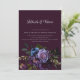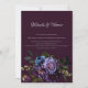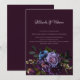 A Design apresenta anêmonas roxas escuras, azul escuro e ranúculo roxo claro num fundo roxo muito escuro. A fonte está em uma delicada e quase branca sombra de cinzas que contrasta com o fundo escuro. O cartão é especificamente para a área em Gótica, que significa elegância e extravagância. É perfeito para casais que procuram um convite de casamento não convencional e único. Muito fácil de personalizar clicando no botão personalizar.
