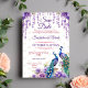 Casamento de pavão e flores roxas com aquarela índia salve a data editável de convites para modelo instantâneo de download digital. Dois belos pavões flores roxas de jasmim, uma asteria pendurada flores e terras salvas o convite modelo