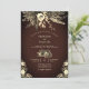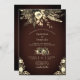Elementos florais de aquarela em lindas cores de outono, colocados sobre uma rica canvas romântica marrom-escura, terminados com a escrita de marfim... destacam os nomes da noiva e do noivo, com todos os outros detalhes de eventos apresentados em caligrafia elegante. O resultado é um belo design adequado para temas casuais e mais formais de casamento.