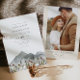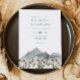 Este convite para o casamento apresenta montanhas de aquarelas boho e flores silvestres coloridas com um design simples e minimalista. Este é o convite perfeito para uma celebração de casamento de primavera ou outono. Edite facilmente a maioria dos textos e mude a foto na parte de trás para seu toque pessoal.