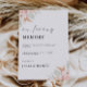 Wildflower In Loving Memory Sign Modelo Honor a memória de seus entes queridos com este lindo sinal de memória amorosa modelo. A elegante e moderna design minimalista complementará qualquer decor de casamento, e servirá como um tributo comovente para aqueles que passaram. Mostre-o na sua cerimônia ou recepção para manter sua memória próxima no dia do seu casamento.