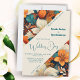Convite De Casamento De Flor Tropical Elegante. Celebre seu dia especial com este convite de casamento elegante e romântico, com um design floral impressionante em um rico fundo de laranja e metal. Este convite é perfeito para casais que procuram uma maneira única e sofisticada de anunciar o seu casamento. Personalize-o com seus nomes, detalhes de casamento e informações de local para criar uma manutenção de eterno para seus convidados.