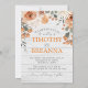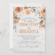 Flores e folhagem impermeáveis em cores neutras e sujas em cima de uma cinza se juntam para fazer um incrível convite moderno e elegante para o final do verão/casamento outono. Precisa de mais espaço? Veja a nossa versão adicional com texto invertido e convites de casamento opcionais. Impressão frente e verso. Inclui envelopes. Laranja, terracotta, sábio, creme, pêssego e verde com um galho rústico, inspirado em madeira clara de design.
