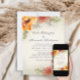 Laranja queimada moderna e elegante e cor d'água coral floral e verde outono/convite de casamento botânico estilo country de outono. Os nomes da noiva e do noivo são escritos em uma bela fonte escrita à mão, escrita em letras de caligrafia.