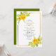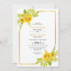 Flores amarelas de aquarela e molduras de ouro para casamento floral Convite. Este elegante design apresenta um quadro dourado e flores amarelas do cacto de aquarela e folhas suculentas nos cantos superior esquerdo e inferior direito e seu texto em ouro e preto.