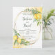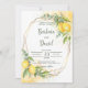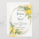 Limões Eucalyptus Yellow Flowers Convite De Casamento. O estilo romântico com limões de aquarela, flores amarelas e eucalipto é perfeito para um casamento de verão rústico. A estrutura geométrica de folha de ouro falso adiciona um toque moderno. A impermeabilização complementa a composição e confere-lhe um charme especial.