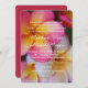 Um esboço aquoso de flores de plumeria frangipani, pintado em tons bonito de rosa, lavanda roxo, amarelo e branco. Um verde para a folhagem circundante. Personalize este convite de casamento para sua praia, tropical, ilha, destino, resort ou casamento havaiano.