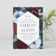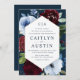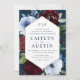 Convites casamento de flores azuis-burgundi marinhos modern