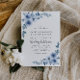 Um design elegante com flores azuis de aquarela. Você pode personalizar o texto, o tamanho do texto, as cores e a fonte neste convite de casamento.