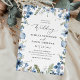 Convites Casamento de Flores Azuis Dusty com Script Moderno