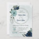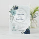 Convite de casamento único com flores azuis e marinhos românticas empoeiradas e folhas verdes, coroa botânica. PARA MAIS PRODUTOS CORRESPONDENTES, clique na coleção acima ou entre em contato comigo.
