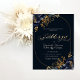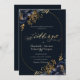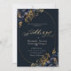 Flores azuis marinhos elegantes com folhas de ouro sobre fundo azul marinho. Para alterar os detalhes, clique em "Detalhes". Para mover o texto ou alterar o tamanho, a fonte ou a cor, clique em "Editar usando a Ferramenta de Design". Visualize o link de coleção nesta página para ver todos os itens correspondentes nesta bela design.