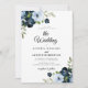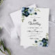 marinho de aquarela flores azuis e azuis-claro e texto elegante. As cores e o texto podem ser personalizados.
