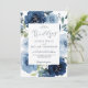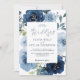 Marinho Elegante Flores Azuis De Pé Azul, Convite De Casamento. Convite para casamento floral elegante. Convite botânico moderno para casamento, com roteiro de caligrafia e flores pintadas manualmente em azul claro e marinho com azul-poeirento claro no verso do convite. Você pode personalizar o texto, o estilo da fonte, a cor e o tamanho em frente e atrás do convite. Por favor, foi livre de me contactar para encontrar itens correspondentes.