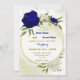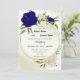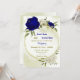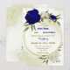 Bonito convite para o casamento, com flores azuis e brancas reais e folhas verdes Os detalhes da brilha do ouro são simulados. É adequado tanto para os convites para o casamento como para o noivado. PARA MAIS PRODUTOS CORRESPONDENTES, clique na coleção acima ou entre em contato comigo