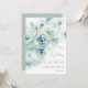 Convite de casamento com flores brancas pequenas. As flores abstrato desenhadas à mão num fundo verde azul. Pintura floral de aquarela de Ornamentado mole. Abstrato natural com ramos florais ciganos. Vintage lindos galhos florais, flores elegantes, primavera ou design floral de verão, buquê romântico. Um enredo botânico. Convite para casamento de botânica de flor delicada. Coleção de Flores Brancas Pequenas.