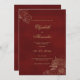 Uma mão elegante e elegante de burgundy vermelha e folha de ouro pintou convites florais sofisticados de casamento.
