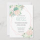 Convites modernos de casamento de design modernos, com flores de cor-de-água cor-de-rosa e cor-de-rosa e verde, com uma camada geométrica rosa. O fundo é uma lavagem macia de ouro. O modelo é fácil de personalizar - seu nome é um elegante roteiro caligrafia manuscrito e o corpo é uma fonte moderna. A parte de trás da carta é verde-menta estável.