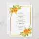 Flores de cor d'água laranja e molduras de ouro para casamento floral Convite. Este elegante design apresenta um quadro de ouro e flores de cacto de cor d'água laranja e folhas suculentas nos cantos superior esquerdo e inferior direito e seu texto em ouro e preto.