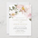 Convide familiares e amigos com este convite de casamento floral. Este convite para o casamento apresenta ilustrações aquáticas de flores cor-de-rosa pinceladas e folhagem com um roteiro elegante. Este convite de casamento de aquarela será perfeito para primavera e casamentos outono. Personalize adicionando os detalhes do evento.