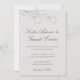 Convite de casamento elegante com um simples desenho desenhado a lápis de um galho com folhas e flores no topo e seus nomes em um grande roteiro sobre um fundo de cinza. O plano de fundo pode ser alterado para qualquer cor desejada. O tom neutro suave desses convites é perfeito para um casamento no outono ou no inverno.