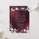 Flores brancas quicas, flocos de neve e espirais elegantes com fundo texturizado rústico em cor de merlot desenhado em Convites Formais de Casamento personalizados. O casamento no inverno único e caprichoso convida você a personalizar facilmente com seu próprio texto. ((Você pode encontrar os essenciais de casamento e favores nesta loja, Bridal Heaven. Entre em contato com ujean4791@gmail.com para obter trabalho personalizado e/ou coordenar papelaria de casamento.)