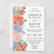 Linda Watercolor Púrpura e flores de Verão laranja design com um confete de brilho dourado