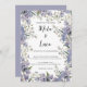 Estas lavandas de flores azuis e de menta são perfeitas para um casamento de primavera ou verão. O romântico e elegante design floral apresenta flores lilás lavandas de aquarela com um sentimento de jardim de boho country. Personalize este design com sua mensagem e informações personalizadas. Todas as designs são impressas.