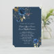 Design único e elegante, com flores e flores azuis de cor azul delgadas de ouro delicado, sobre fundo azul real; sobre o suporte e as iniciais florais traseiras. Use a ferramenta Personalizar para adicionar suas informações. Visite, por favor, minha Coleção Floral Dourada Azul.