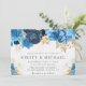 Elegante Aquarela Azul e Flores Douradas design com fundo floral branco.