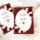 Apresentando delicadas burgundy e flores de aquarela embaçadas, um quadro oval dourado e tipografia elegante, esse convite elegante dá o tom para um casamento romântico e encantador. Personalize-o para torná-lo exclusivamente seu e criar uma impressão duradoura em seus convidados.