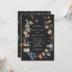 Um bonito convite de casamento de feiticeiro, que inclui uma coroa floral assimétrica de sapato de cavalo com coloração aquosa colorida Flores holandesas vivas em fundo de carvão. O reverso apresenta um padrão de flores solto.