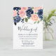 Convites Casamento de Flores Elegantes Blush & Marinho