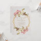Este convite geométrico ao casamento floral combina múltiplas tendências de 2019: geométrico, mármore e metálico (ouro). Seu quadro irregular tem buquês de flores brancas e cor-de-rosa para cima e para baixo sobre dois polígonos dourados com cobertura. Os nomes da noiva e do noivo são escritos em um roteiro caligráfico elegante, também usado para a última linha. As flores cor-de-rosa e branca-safra são de um cartão postal antigo de Bertha Maguire (1862-1910), agora no dominio público.