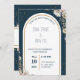 Marinho Azul e Creme Flores Ilustradas Convite para Casamento