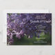 Convide convidados para compartilhar na sua próxima festa de jardim de verão, dentro da cerimônia de casamento e recepção com o bonito Convite de Casamento das Flores Lilás Roxo. Este elegante convite à floração púrpura e púrpura apresenta uma fotografia floral próxima de flores púrpuras de flor lilás na árvore com uma pitada de luz solar matinal.