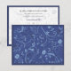 Caule ondulado e flores em tons de azul compõem o principal elemento gráfico deste convite único. Uma moldura azul escura é repetida na frente e no verso com a imagem floral usada como marca d'água atrás do texto. Use para casamentos, festas de noivado, aniversários ou eventos corporativos. Disponível em cores alternativas com selos e brindes correspondentes.