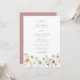 Este elegante convite de casamento apresenta uma bela cor d'água pintada manualmente, cor rosa pincelada, azul empoeirado, e sage, flores verdes prensadas com tipografia e roteiro de cinzas. O fundo é um simples e elegante cor-de-rosa rosa empoeirado. (Esta é parte da coleção Delicate Pressed Florals que pode ser visualizada clicando no link acima.)