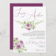 Belo convite para o casamento em cores magenta escuras com uma bonito mostra de flores de aquarela em volta de seus detalhes de evento. Design de casamento romântico para seu dia especial em cores lilás/magenta roxas. Design faseável e sofisticado, adequado para qualquer estação. Casamento clássico e florescente. Casamento botânico na moda. Todo texto, fonte e cor da fonte são totalmente personalizáveis para atender às suas necessidades. Se você quiser ajudar a personalizar, ou se quiser que os produtos combinem, entre em contato comigo através da minha loja e eu ficarei muito feliz em ajudá-lo.