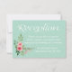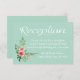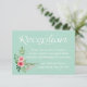 Avise aos seus convidados onde sua recepção de casamento será mantida com este cartão cor-de-rosa de horta floral. Este cartão de recepção encantador apresenta flores rosa de cor d'água pintadas à mão em tons de rosa e verde que se destacam contra o fundo da casa da moeda. Suas informações de evento são impressas em letras brancas e fontes de estilo caligráfico. A parte de trás do cartão apresenta um plano de fundo verde da casa da moeda. Você pode mudar facilmente a cor de fundo para corresponder ao seu casamento ou paleta de cores de evento. Os cartões de recepção são excelentes para...Casamentos * Vendas de negócios / eventos de janto * Caridade e arrecadadores de fundos * Partes * Banquetes / cerimônias de prêmio Role para baixo para ver os produtos florais cor-de-rosa que você pode desfrutar.