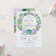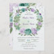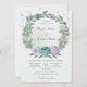 flores românticas, azuis e roxas verdes folhas de coroa botânica convite para casamento
