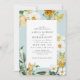 Este convite de casamento floral de aquarela apresenta flores silvestres do jardim em cor branca, amarelo quente e laranja.A cor amarela quente, creme, branca e azul empoeirado é uma paleta de cores perfeita para casamentos de primavera e verão.