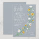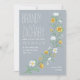 Ponha o tom para o seu grande dia com este convite de casamento moderno e elegante, perfeito para comemorações de primavera e verão. Apresentando flores silvestres de cor branca e ouro, pintadas à mão, com folhas verdes em folha, este pop design contra um fundo azul empoeirado. O estilo chic boho e country oferece um aspecto eterno e sofisticado que impressionará seus convidados. Ideal para casamentos ao ar livre, cerimônias de jardim, ou temas rústicos, este convite é uma bela maneira de anunciar seu dia especial. Totalmente personalizável para atender às suas necessidades!